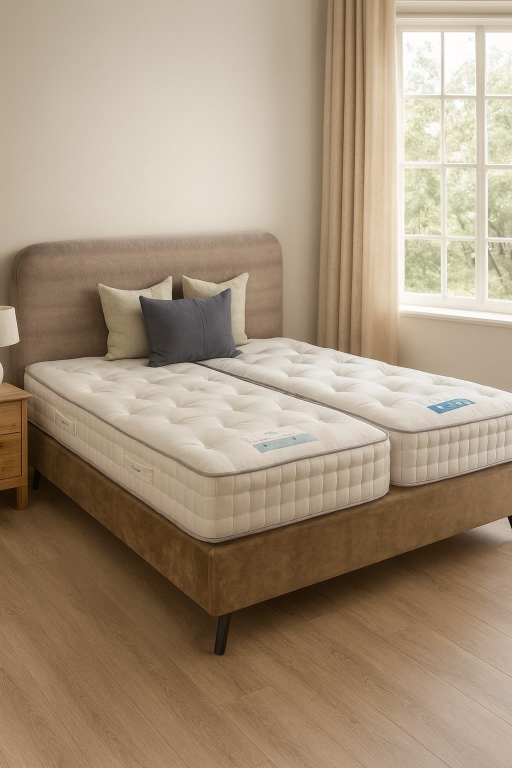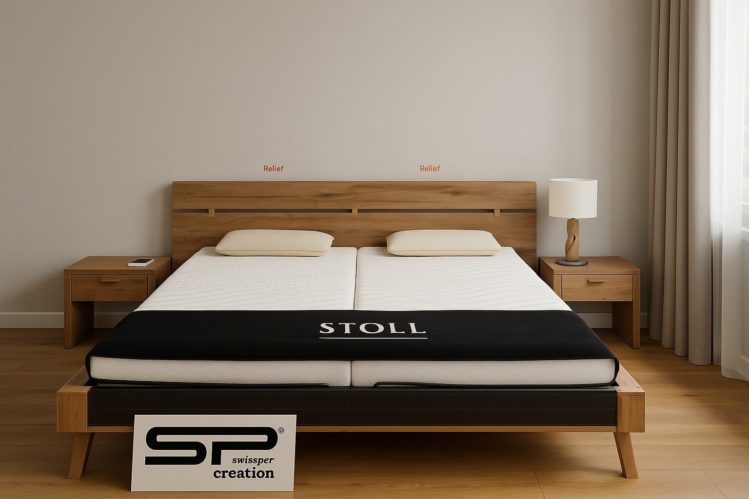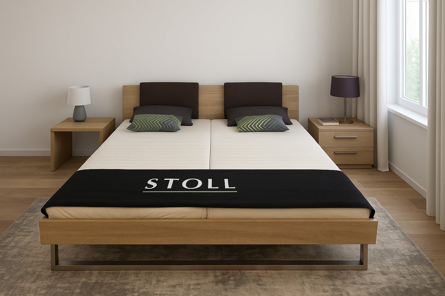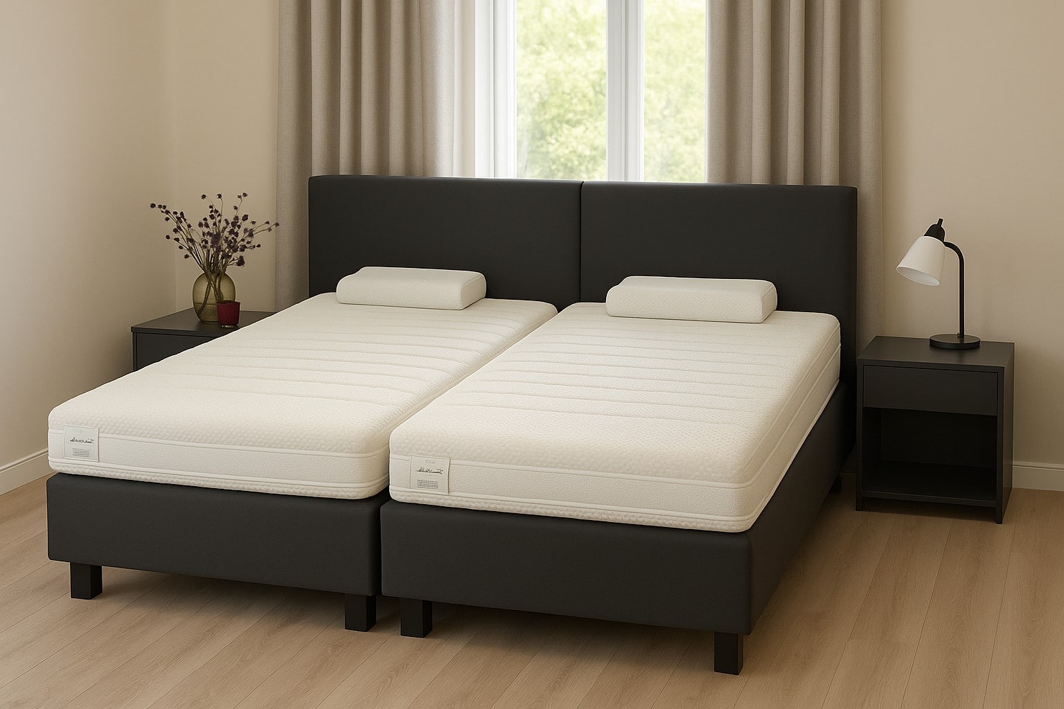 Lit 160 x 200 DORMIENTE Avec 2 chevets Dormiente ; 2 matelas Stoll ; 2 sommiers Dormiente Lordosis S