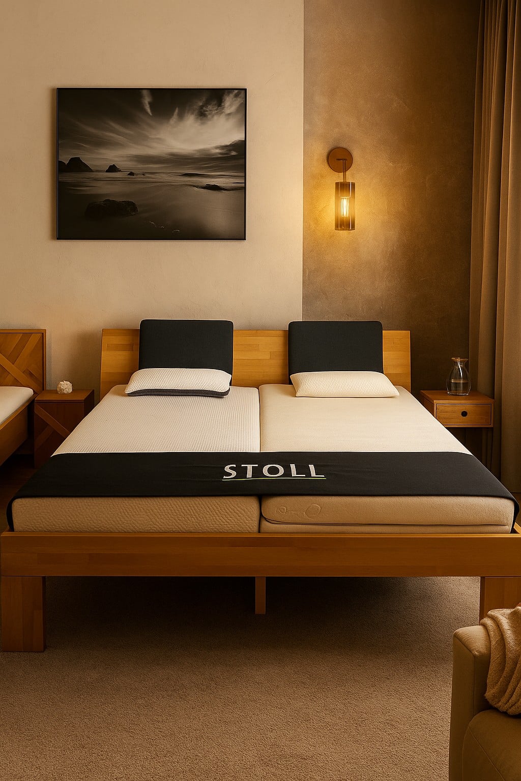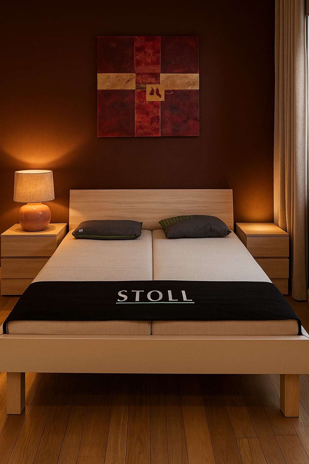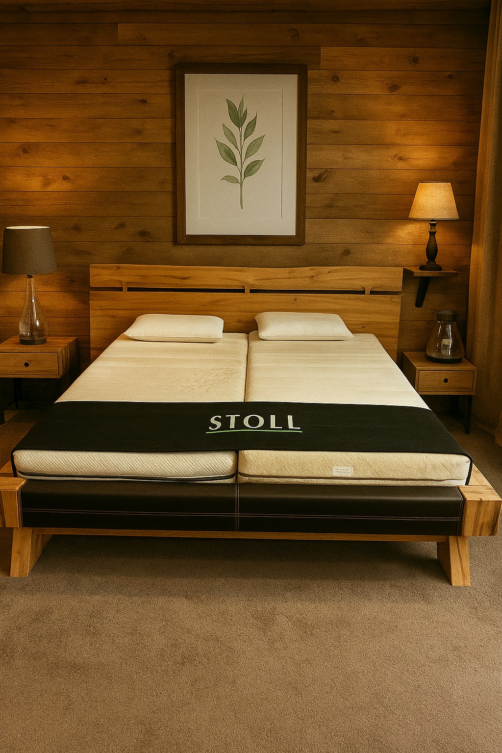 Avec 2 chevets Dormiente ; 2 matelas Stoll ; 2 sommiers Dormiente Lordosis S