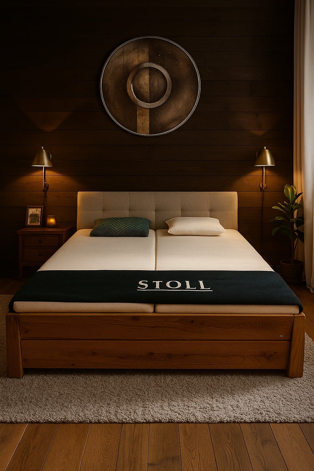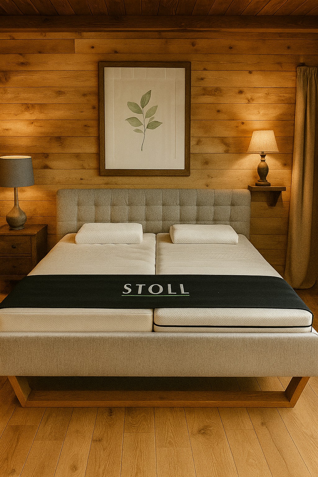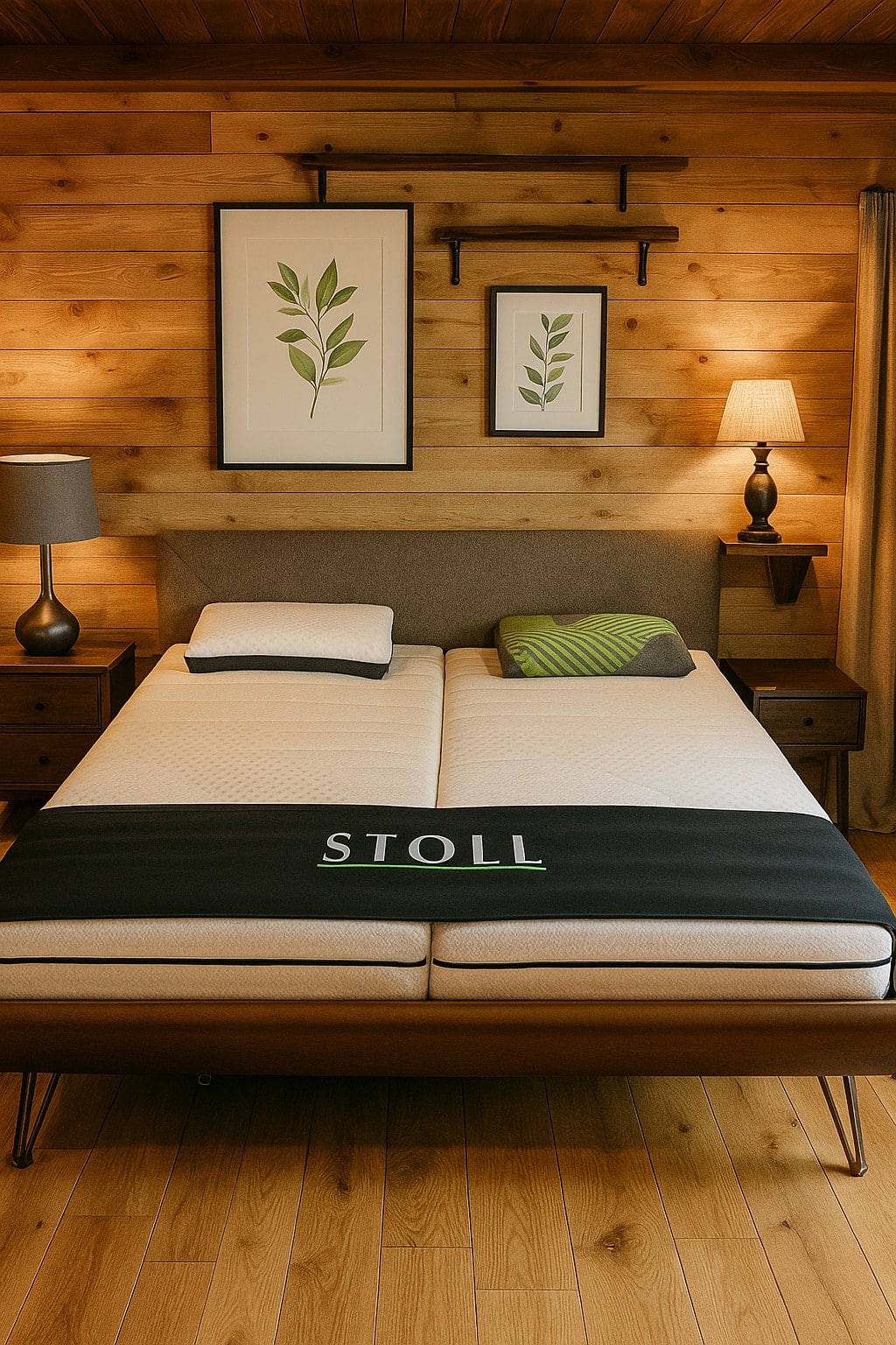 Avec 2 chevets Dormiente ; 2 matelas Stoll ; 2 sommiers Dormiente Lordosis S